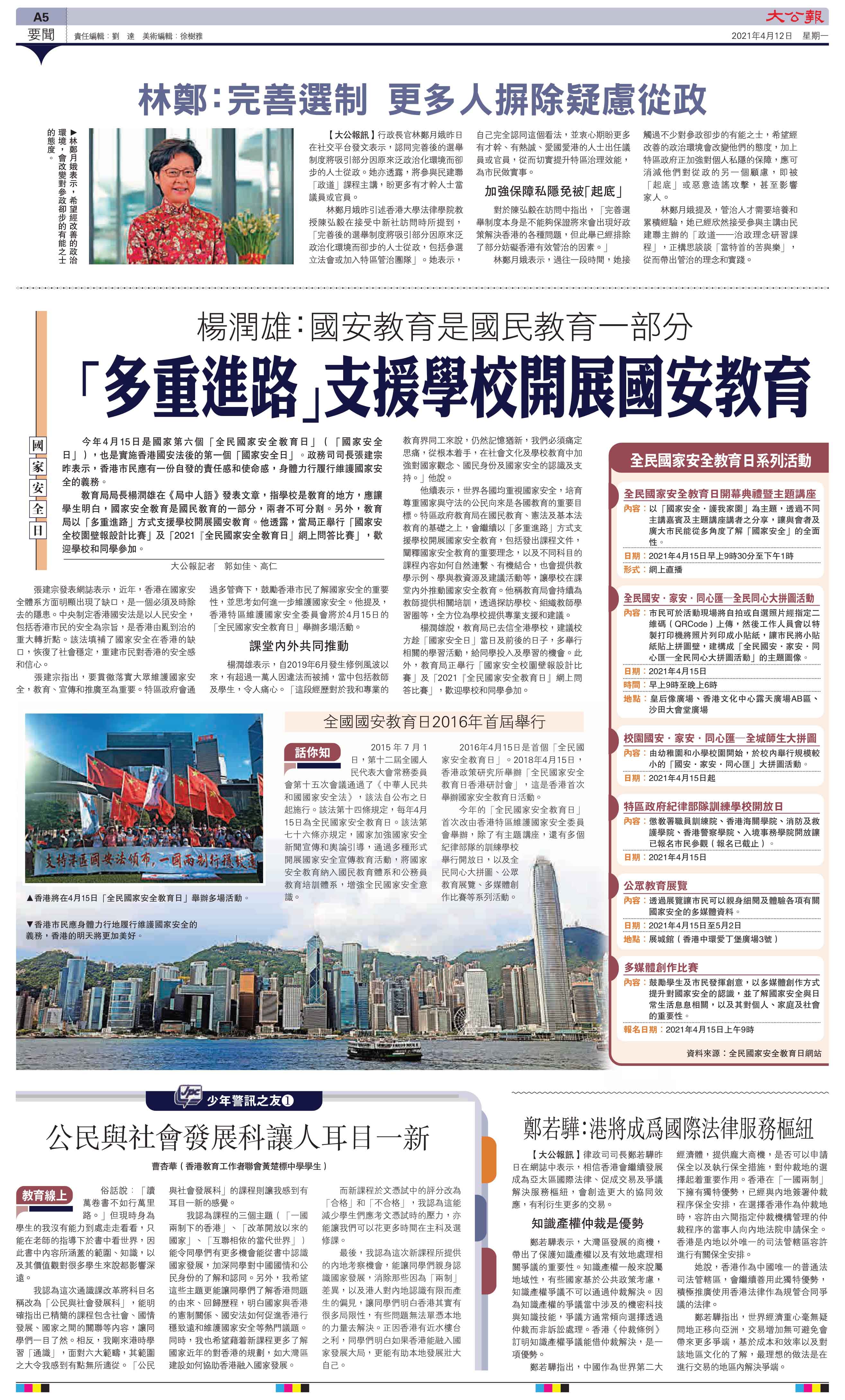 公民與社會發展科讓人耳目一新(大公報 12/04/2021)