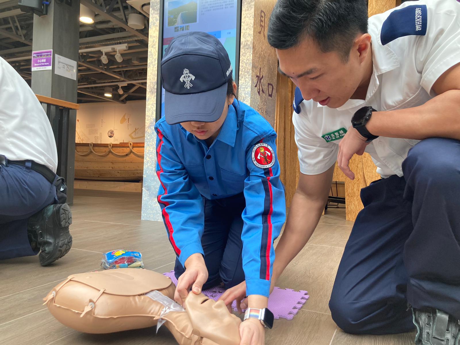 今天的活動中,同學有機會向專業的教護員學習急救知識,甚至對人體模型嘗試行使心外壓。同學們都對急救知識很有興趣,專注投入參與活動