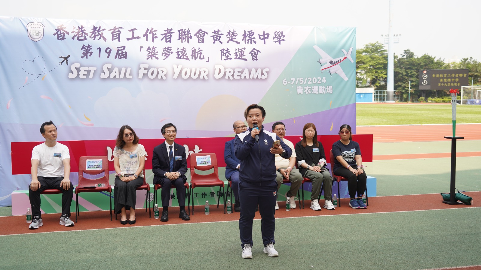 這次運動會以「築夢遠航」為主題,象徵著學生和老師在競技場上付出辛勤努力,實現了各自不同的夢想。而今年首次舉行的燃點夢想火炬儀式,寓意著我校的同學們通過努力學習和自我提升,在德、智、體、群、美各方面都獲得了豐碩的成長。他們向著無限廣闊的天空高飛,不僅在這次運動會中熠熠生輝,更將這種全力以赴的體育精神傳承給未來的每一屆學生和教師。